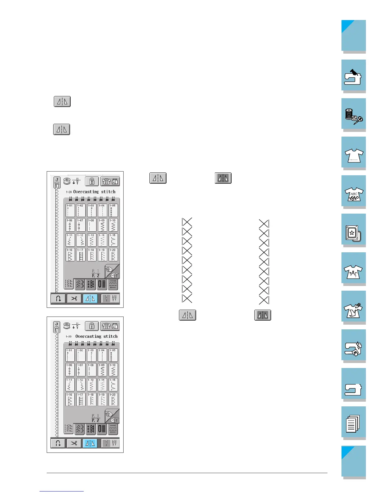 image of the selected stitch pattern (this is true of buttonholes, multi-directional sewing, and