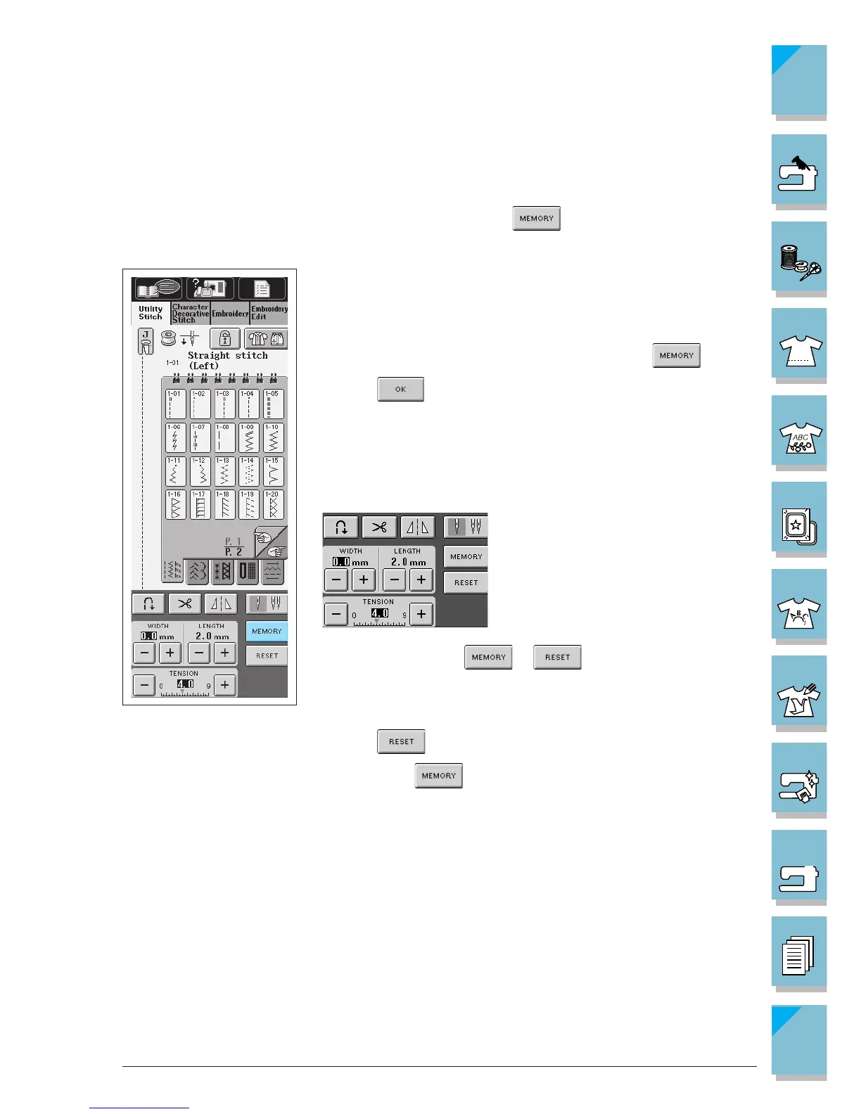 matic reinforcement stitching, etc., are preset by the computer for each stitch pattern. If you want