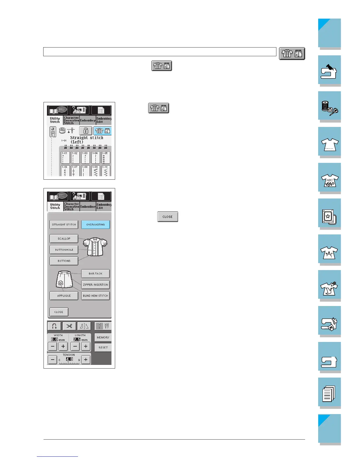 You can also select utility stitches using . Use this key when you are not sure which stitch
