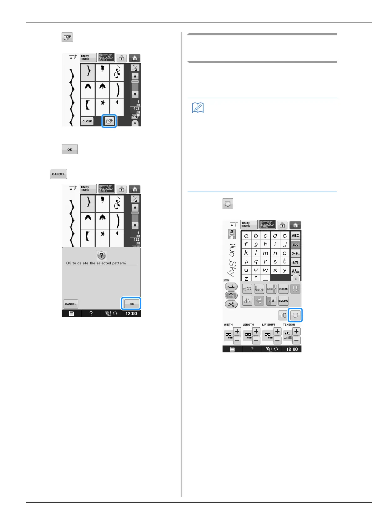 * If you decide not to delete the stitch pattern, press