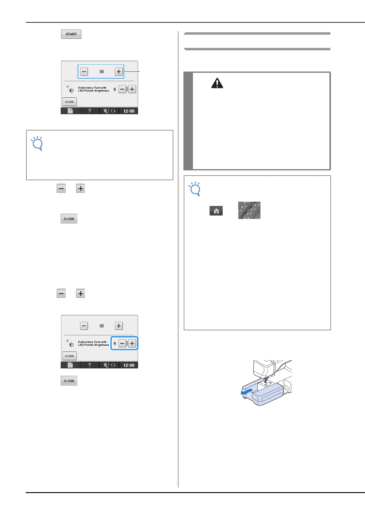not touch the embroidery carriage and frame