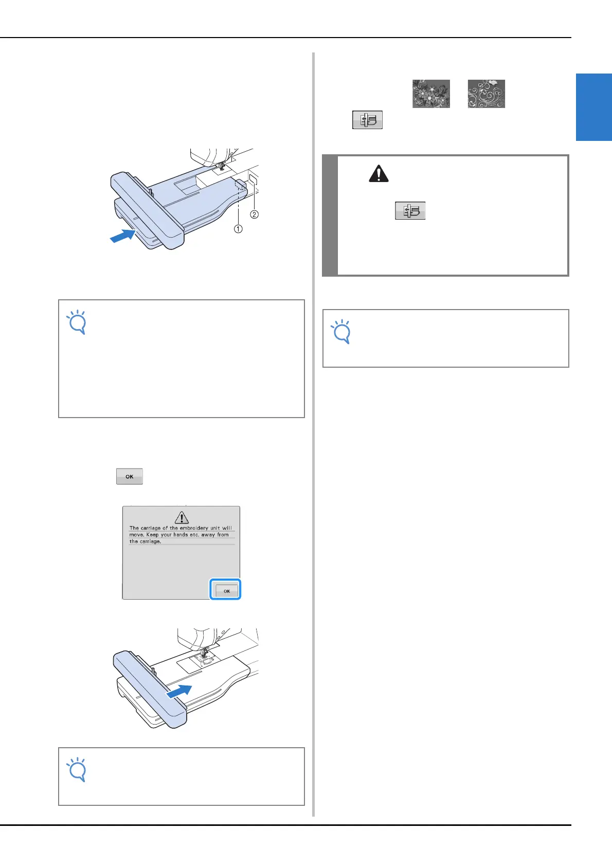 • Always remove the embroidery frame before