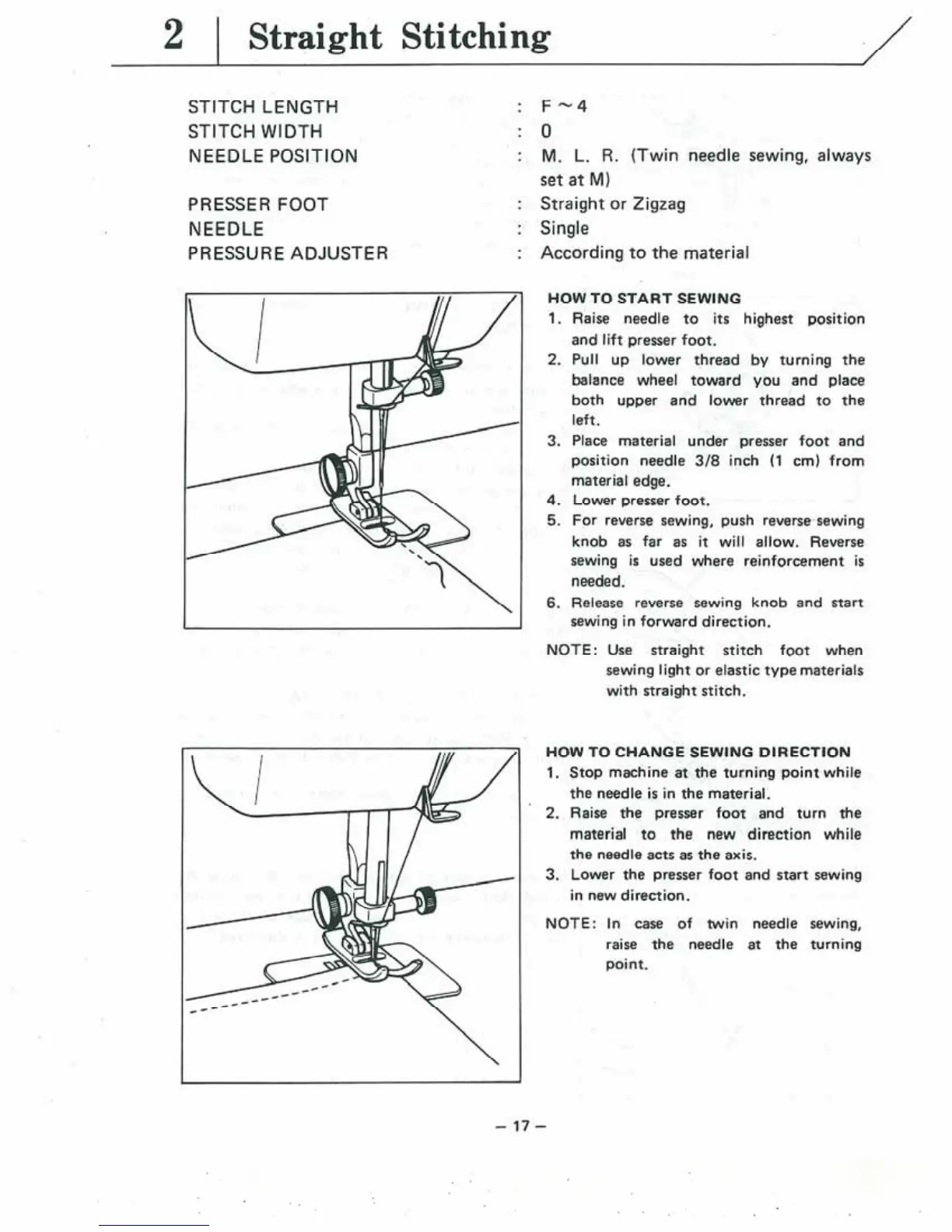 Brother VX-810 - Straight Stitching; How to Start Sewing; How to Change Sewing Direction