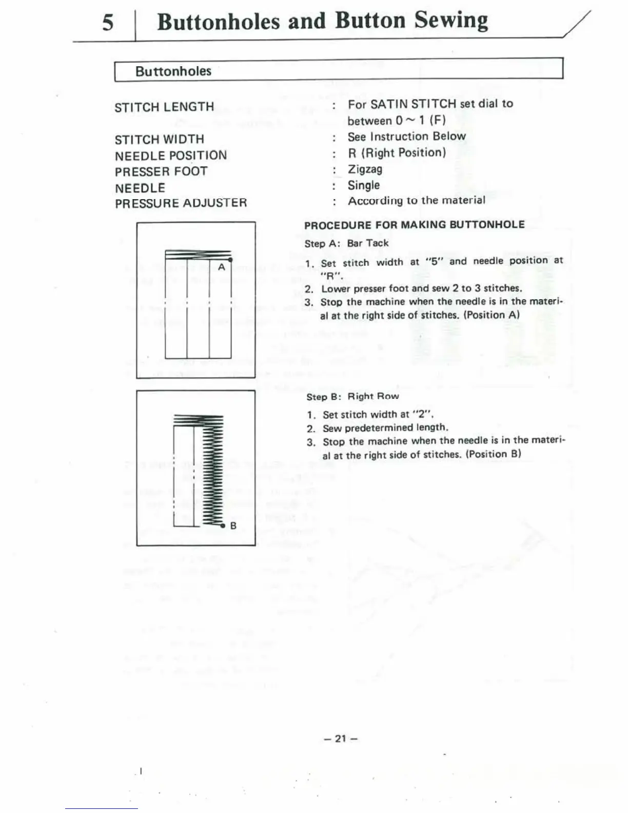Brother VX-810 - Buttonholes and Button Sewing; Buttonholes