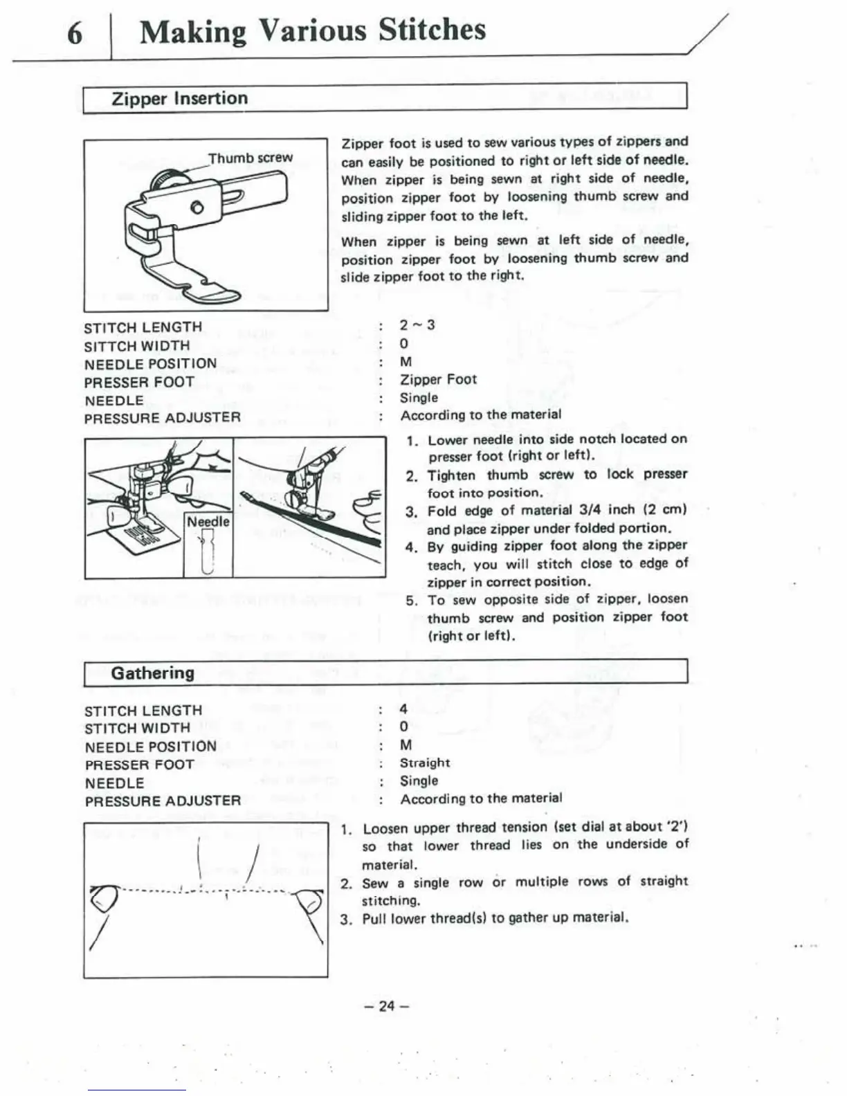 Brother VX-810 - Making Various Stitches; Zipper Insertion; Gathering