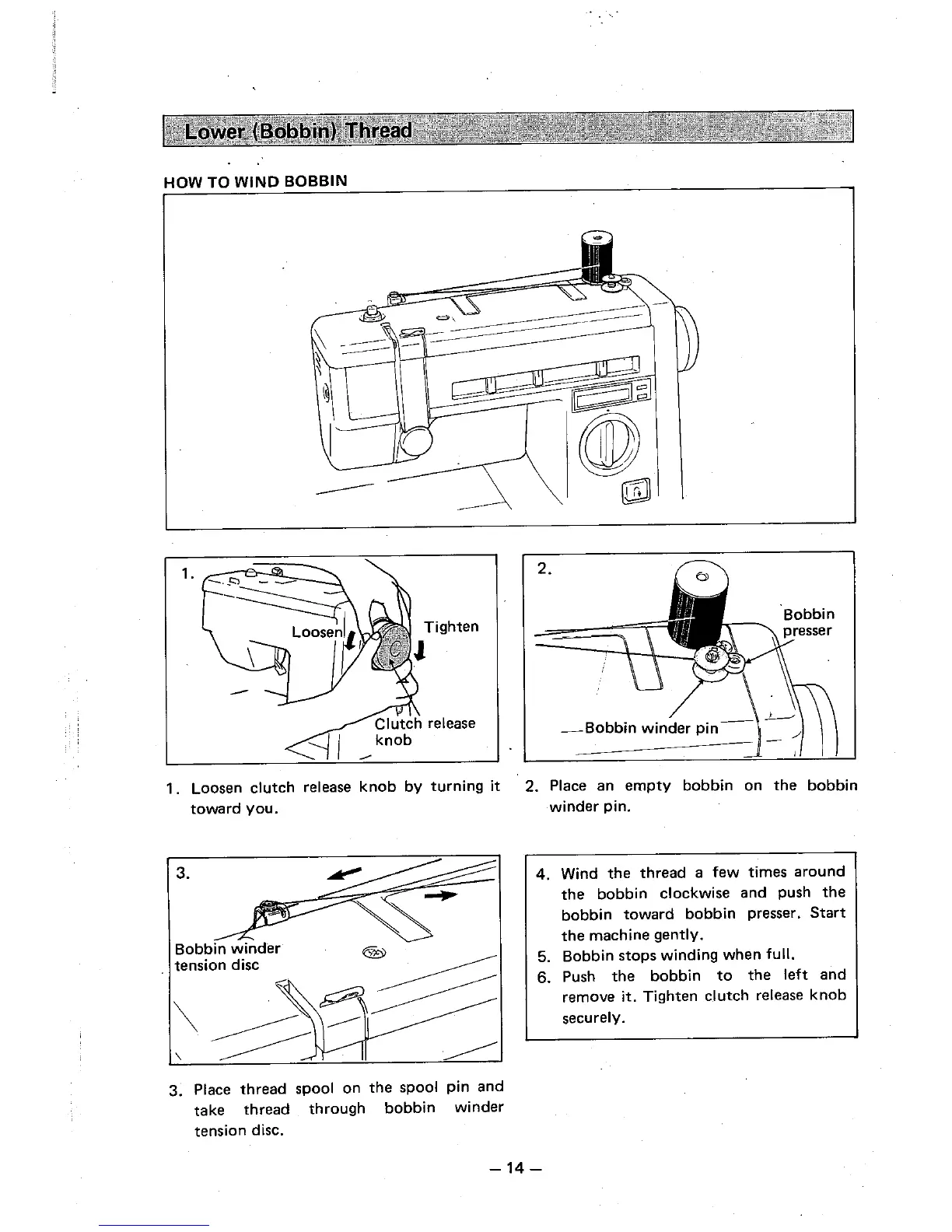 Brother VX-950 - Lower (Bobbin) Thread; How to Wind Bobbin