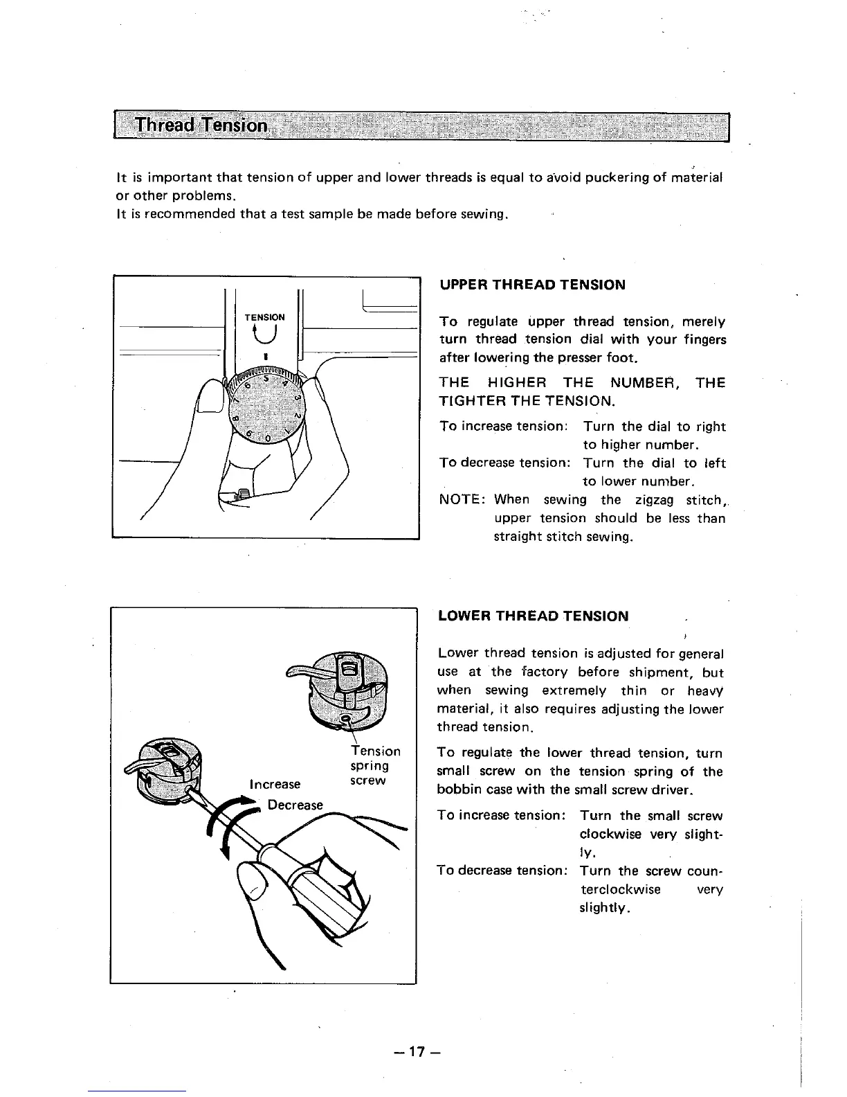 Brother VX-950 - Thread Tension; Upper Thread Tension; Lower Thread Tension