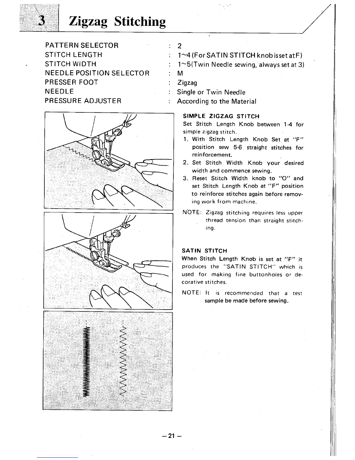 Brother VX-950 - Zigzag Stitching; Simple Zigzag Stitch; Satin Stitch