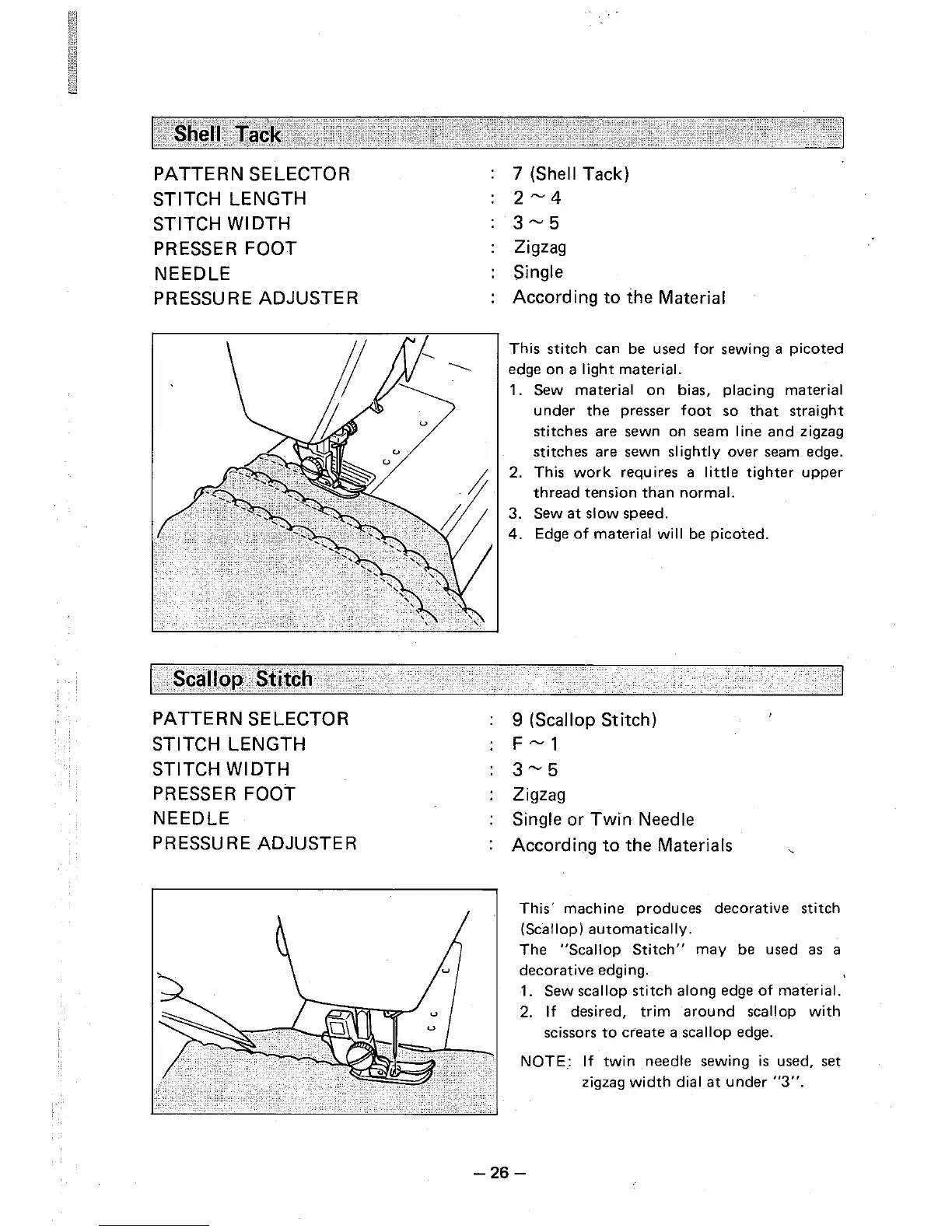 Brother VX-950 - Shell Tack; Scallop Stitch