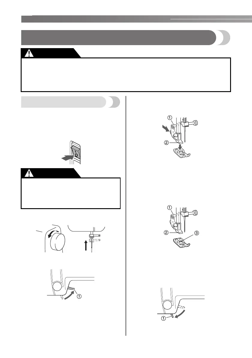 ● Antes de cambiar el pie prensatela, apague la máquina. Si deja la máquina encendida y pisa el pedal, la