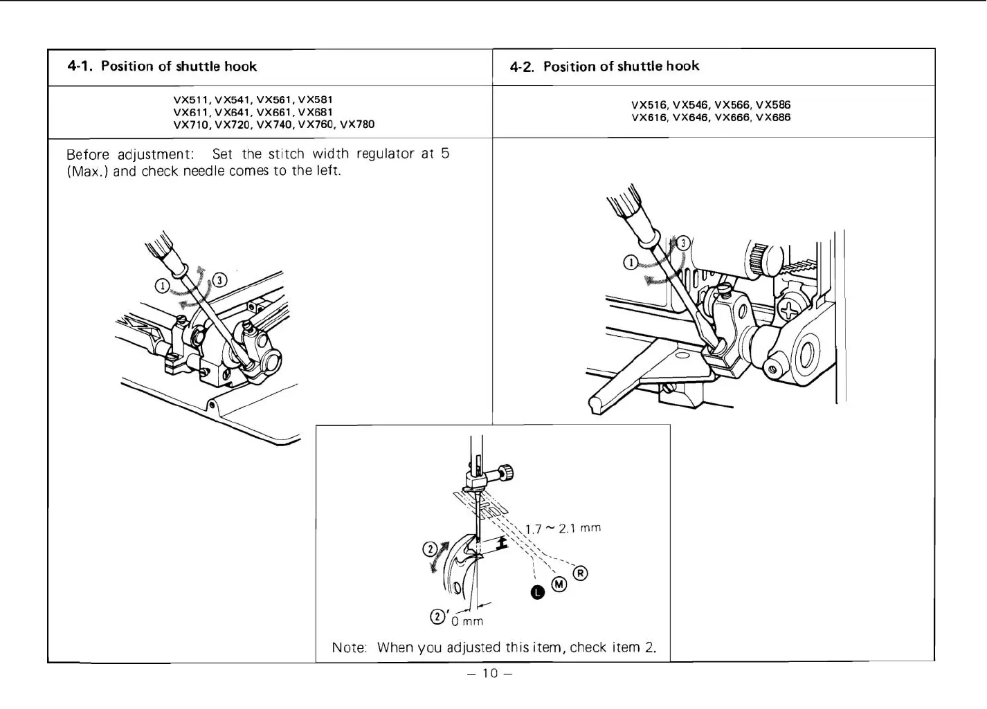 Brother VX760 - 4-1. Position of shuttle hook; 4-2. Position of shuttle hook