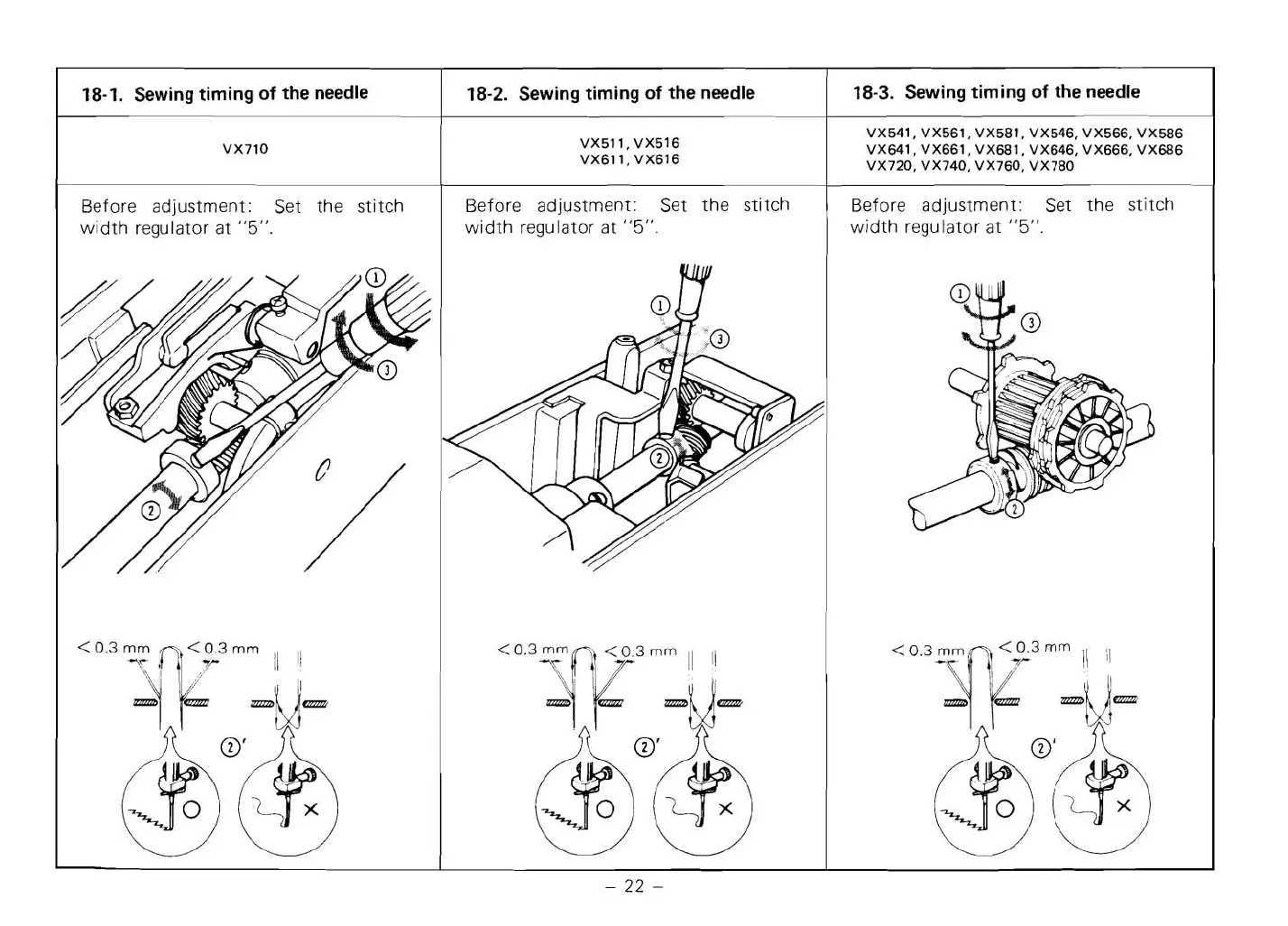 Brother VX760 - 18-1. Sewing timing of the needle; 18-2. Sewing timing of the needle; 18-3. Sewing timing of the needle