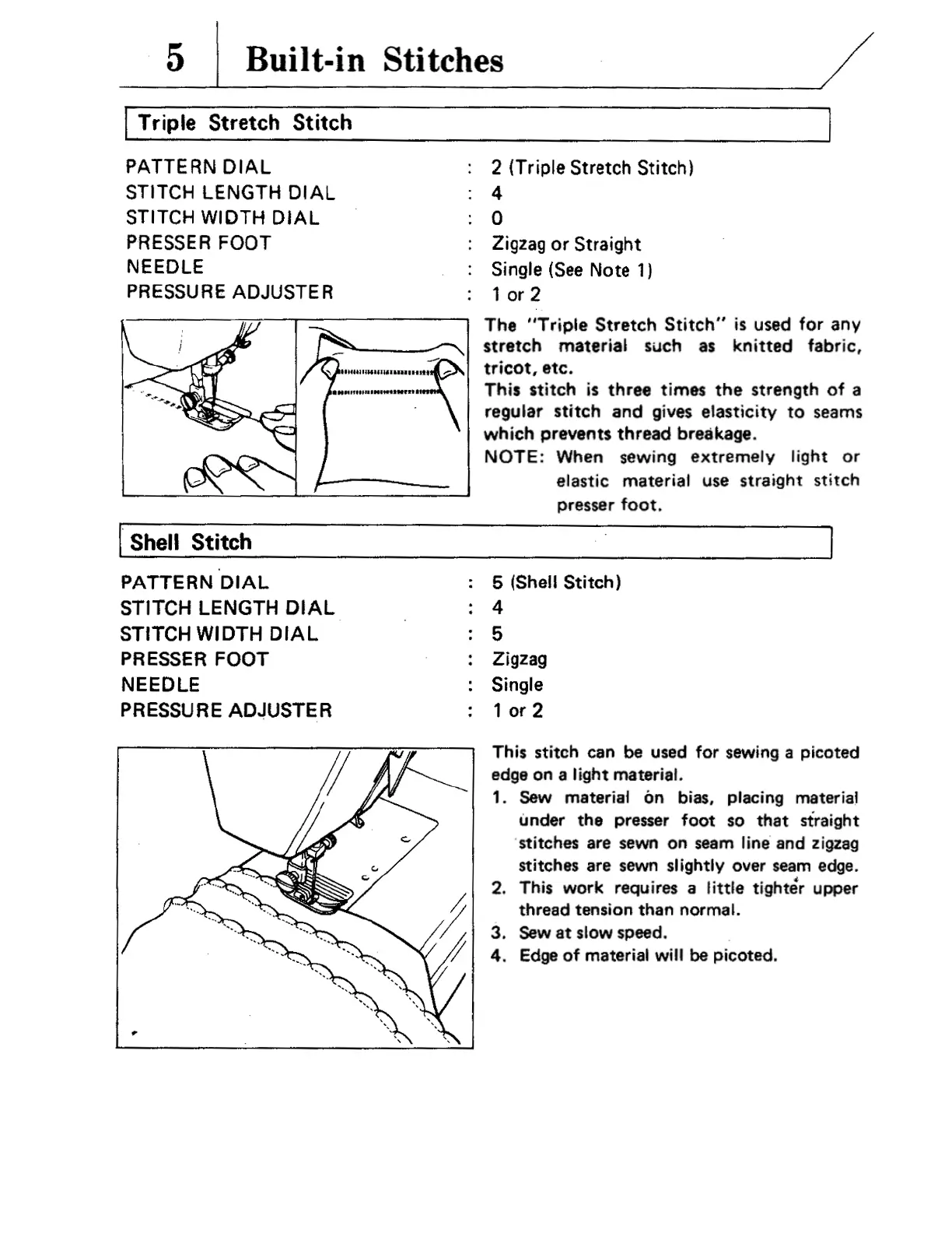 Brother vx780 - 5. Built-in Stitches; Triple Stretch Stitch; Shell Stitch