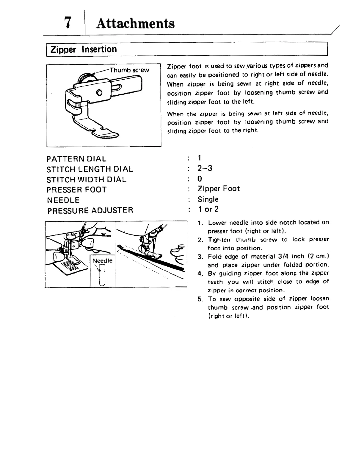 Brother vx780 - 7. Attachments; Zipper Insertion