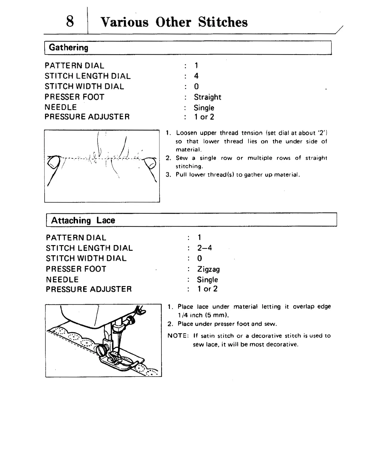 Brother vx780 - 8. Various Other Stitches; Gathering; Attaching Lace