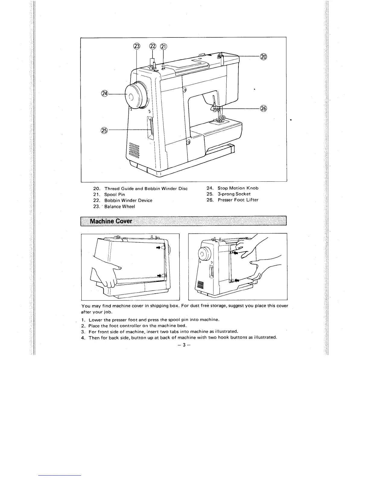 20. Thread Guide and Bobbin Winder Disc 24. Stop Motion Knob