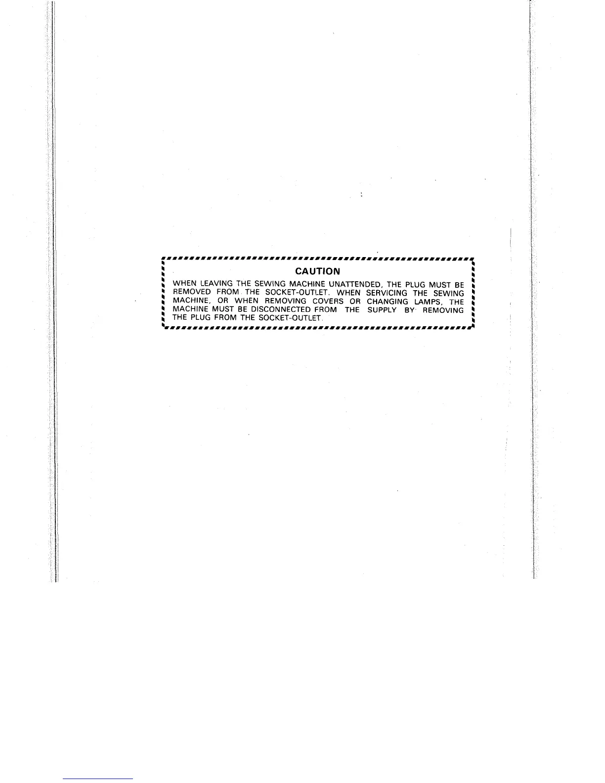 WHEN LEAVING THE SEWING MACHINE UNAlTENDED, THE PLUG MUST BE