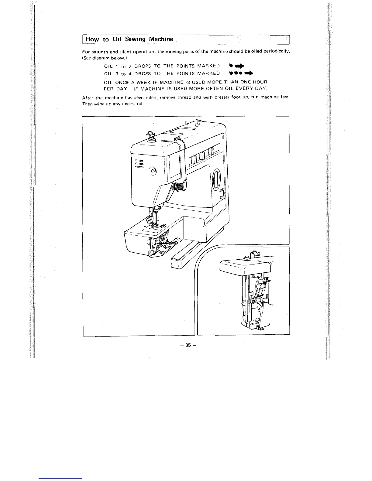mach~ne has been o~led, remove thread and w~th presser foot up, run machlne fast.