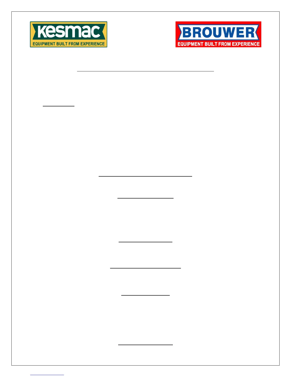 3. All replacement parts used in warranty situations must be furnished by Kesmac and Brouwer Turf or approved by Kesmac and