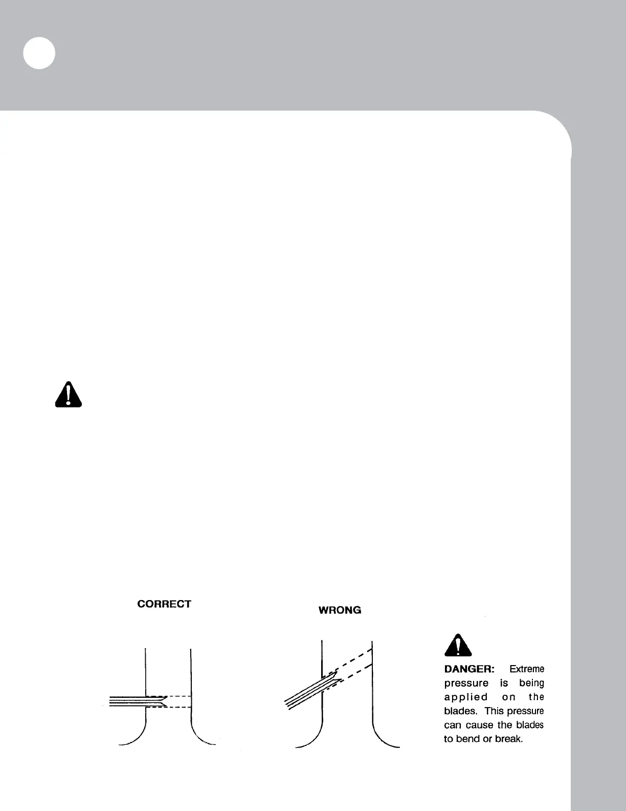 blades to bend or break, possibly causing serious injury or death. (SEE DRAWING BELOW)