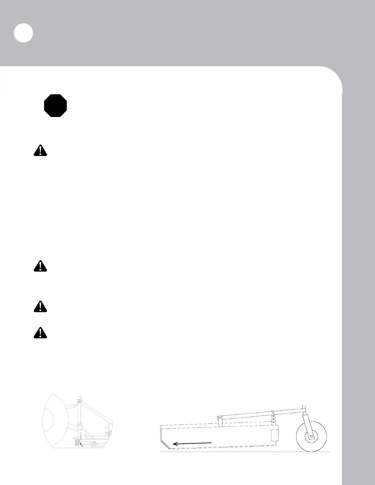 Caution! Never allow anyone between the tractor and the equipment during the hitching