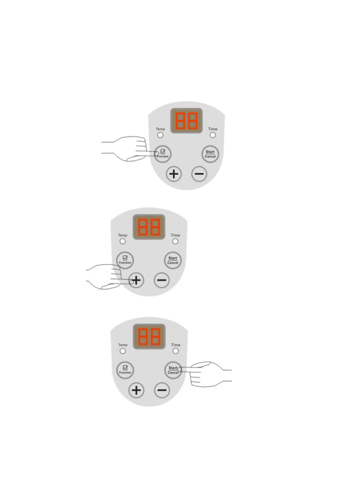 Rozsah nastavení teploty je od 20℃ do 60℃. Poté stiskněte tlačítko „Start /Cancel” pro schválení