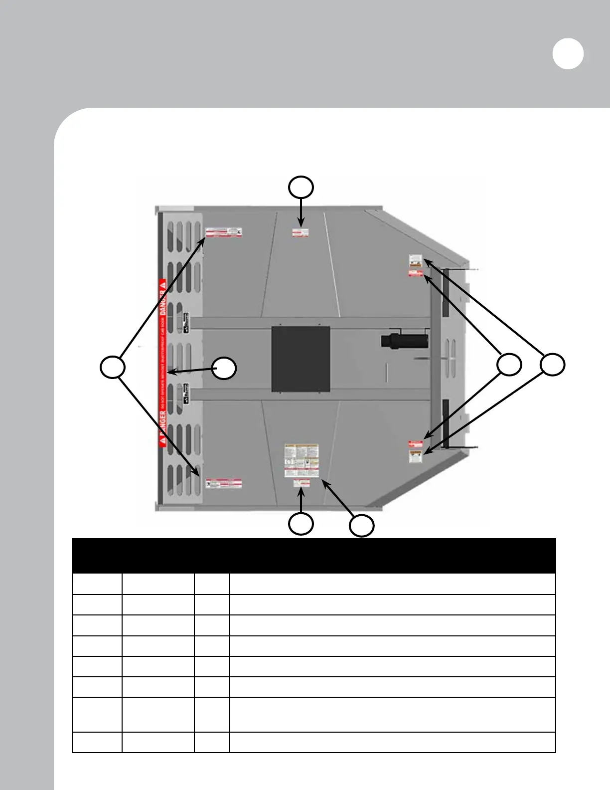 Safety decals must be positioned as illustrated below. Use this diagram to correctly identify missing,