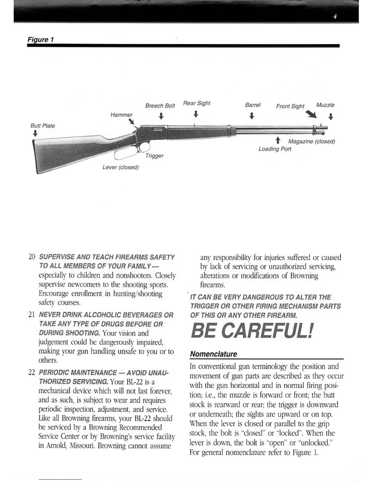 Browning BL-22 LEVEL ACTION RIFLE - Family Firearms Safety; Avoid Alcohol;Drugs While Shooting; Periodic Maintenance and Servicing; Nomenclature