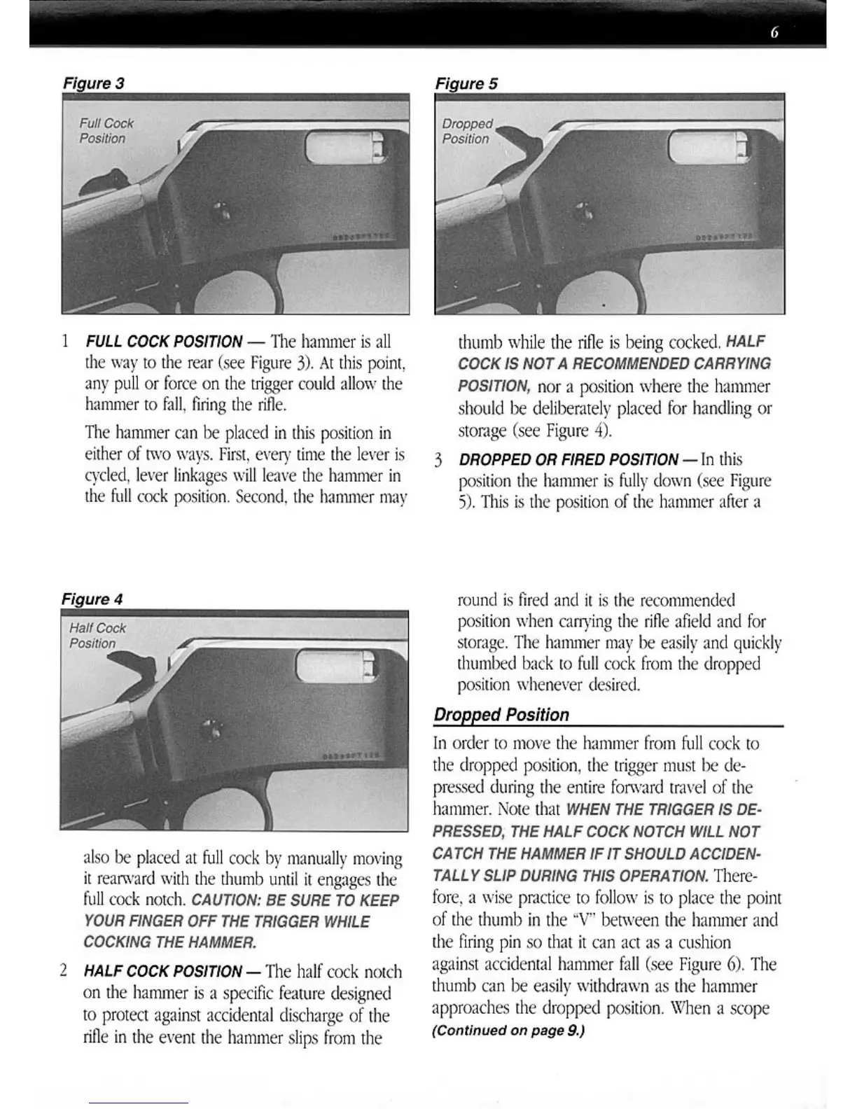 Browning BL-22 LEVEL ACTION RIFLE - Hammer Operation and Safety; Full Cock Position; Half Cock Position; Dropped or Fired Position