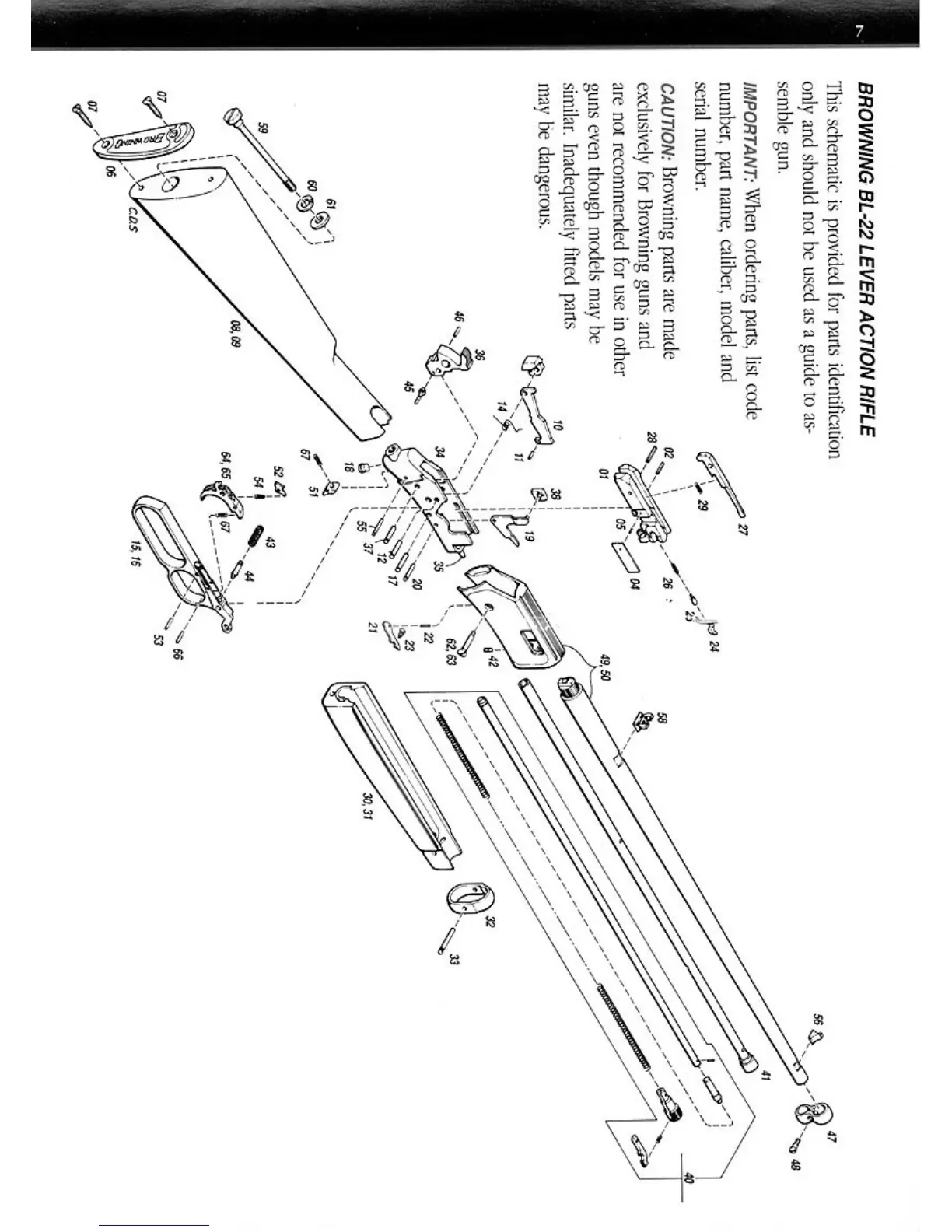 Browning BL-22 LEVEL ACTION RIFLE - Parts Identification; Ordering Genuine Browning Parts; Caution on Part Compatibility