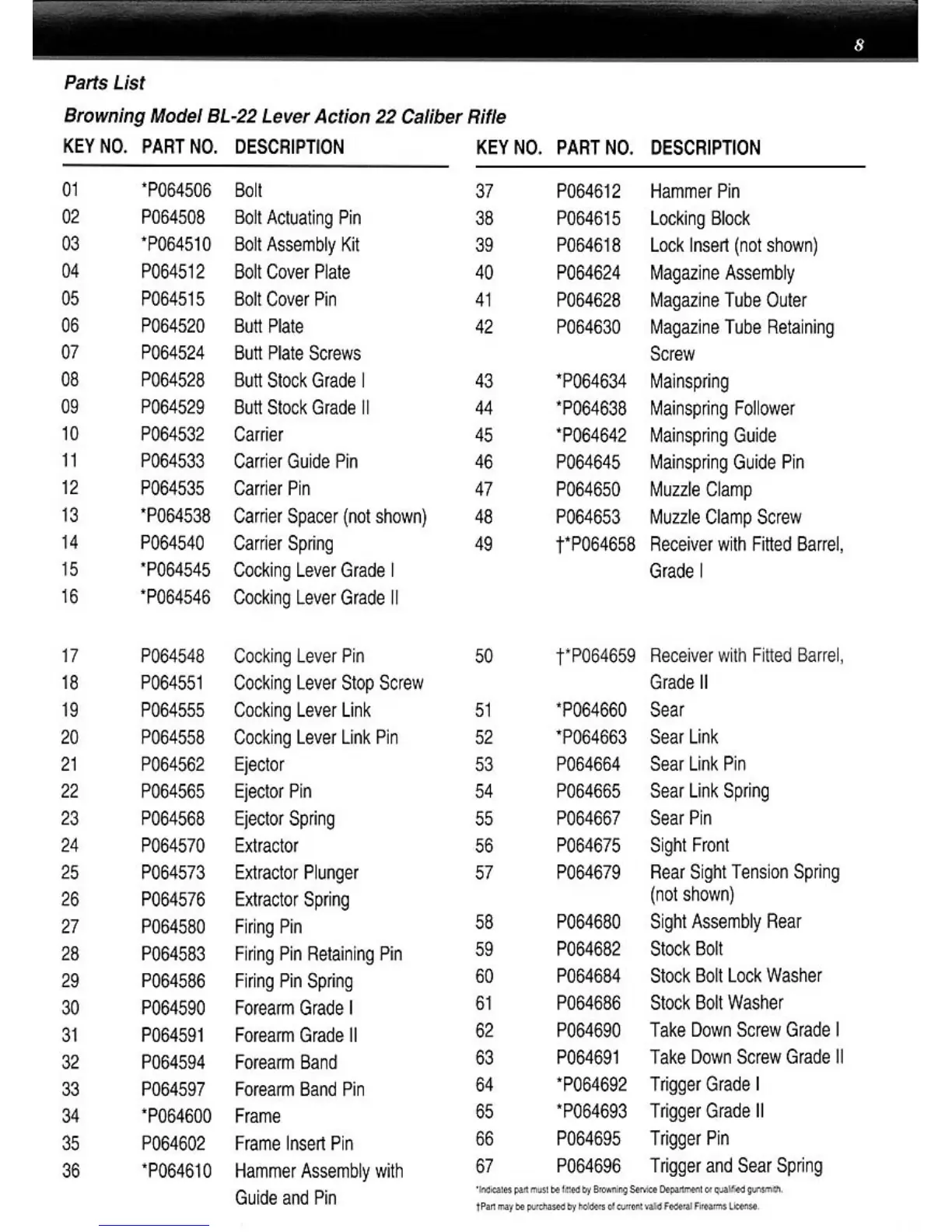 Browning BL-22 LEVEL ACTION RIFLE - Detailed Parts List