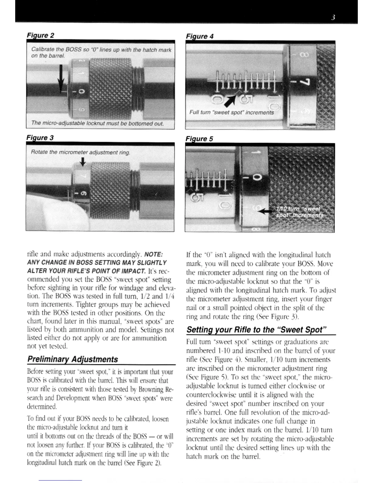 Browning BOSS - BOSS Adjustment and Calibration; Preliminary Adjustments; Setting your Rifle to the Sweet Spot