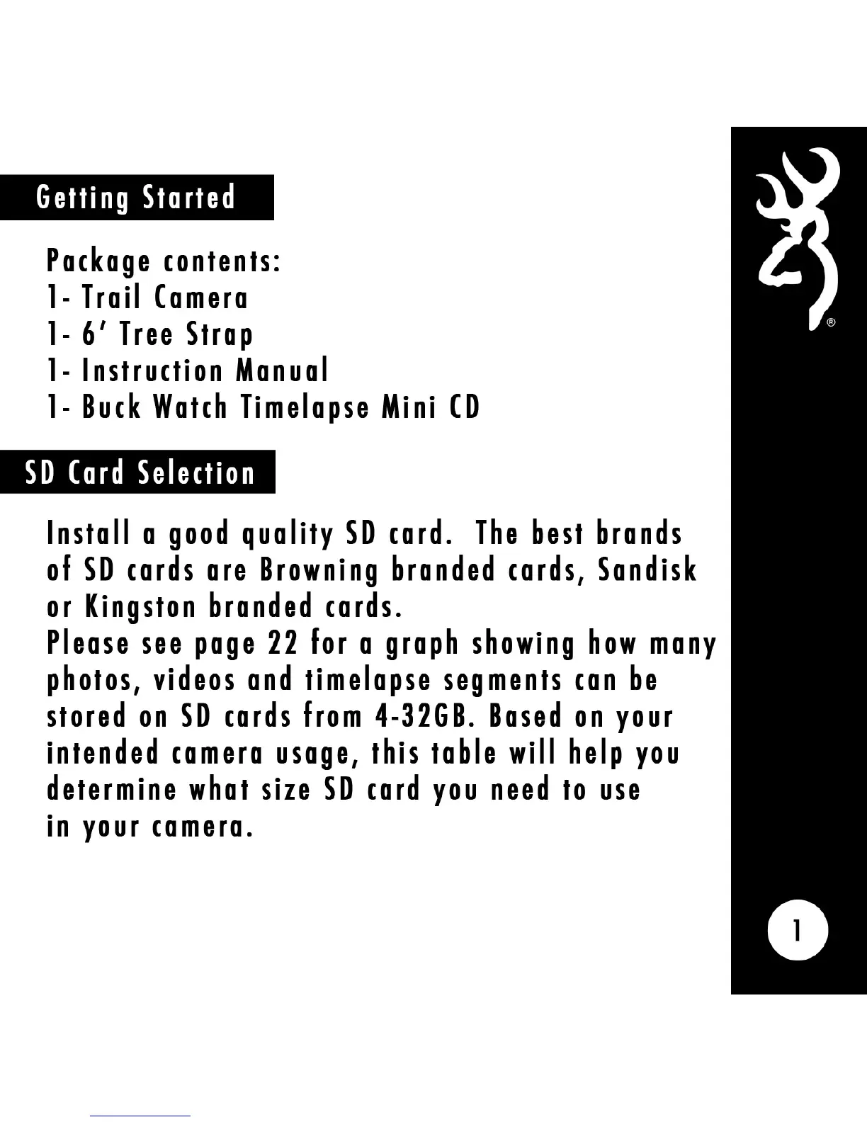 Browning BTC-1 - Getting Started; SD Card Selection; Package Contents