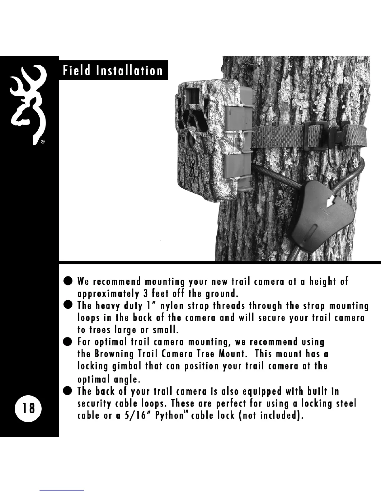 Browning BTC-1XR - Field Installation; Mounting Recommendations; Using Tree Mount and Cable Locks