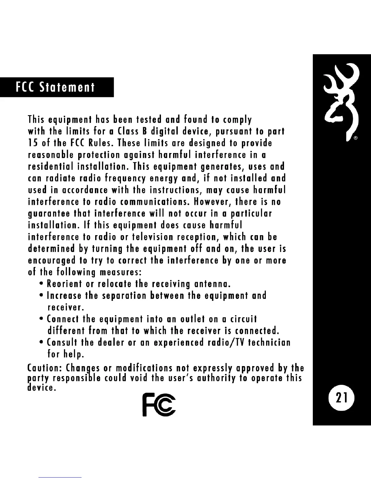 Browning BTC-1XR - FCC Statement