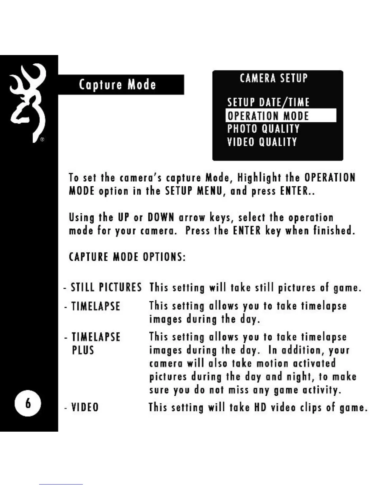 Browning BTC-3 - Capture Mode Settings; Operation Mode Options
