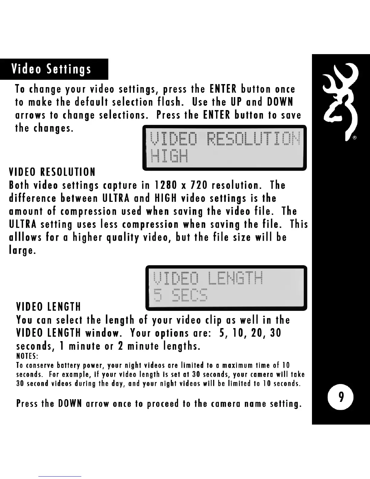 Browning BTC-6HD - Video Settings