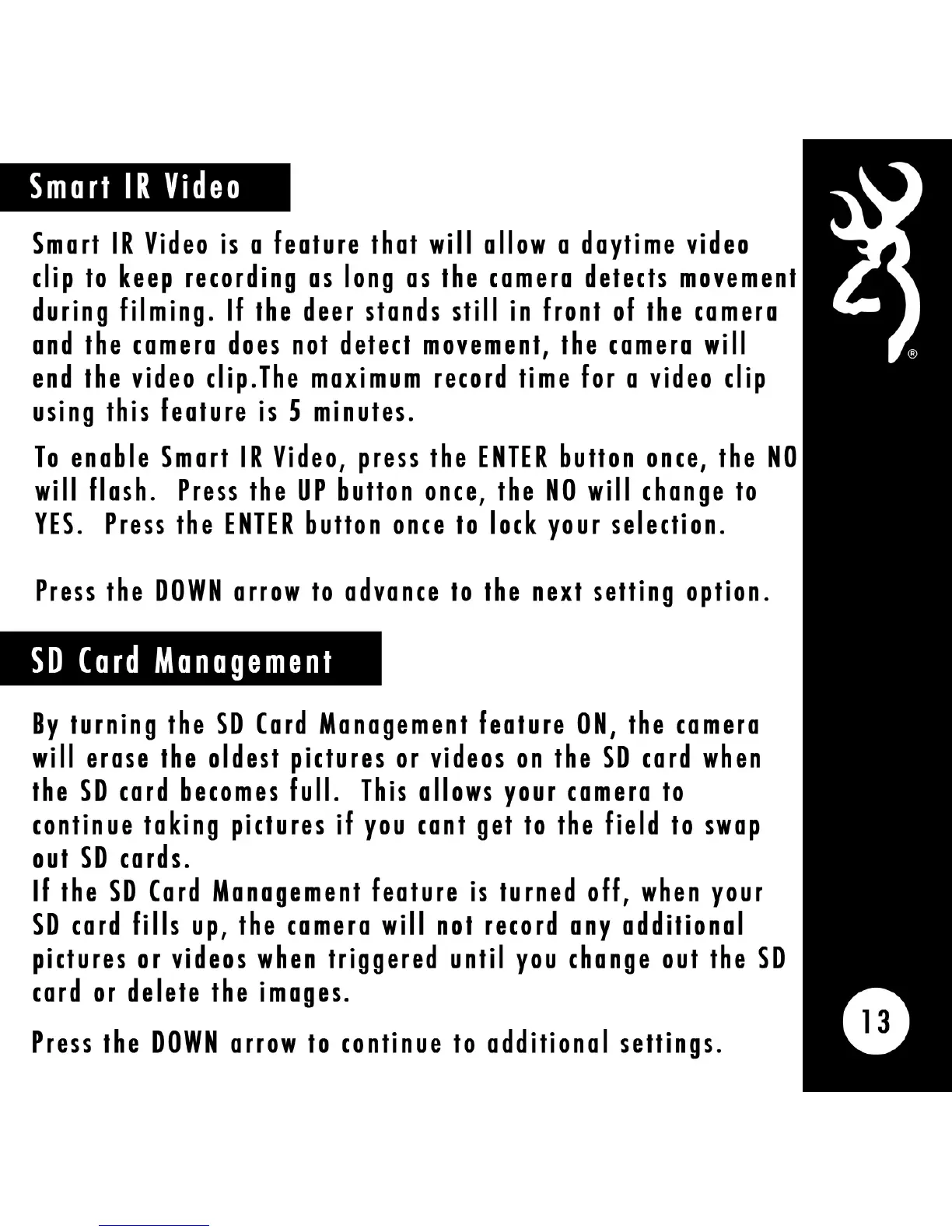 Browning BTC-6HDE - Smart IR Video; SD Card Management