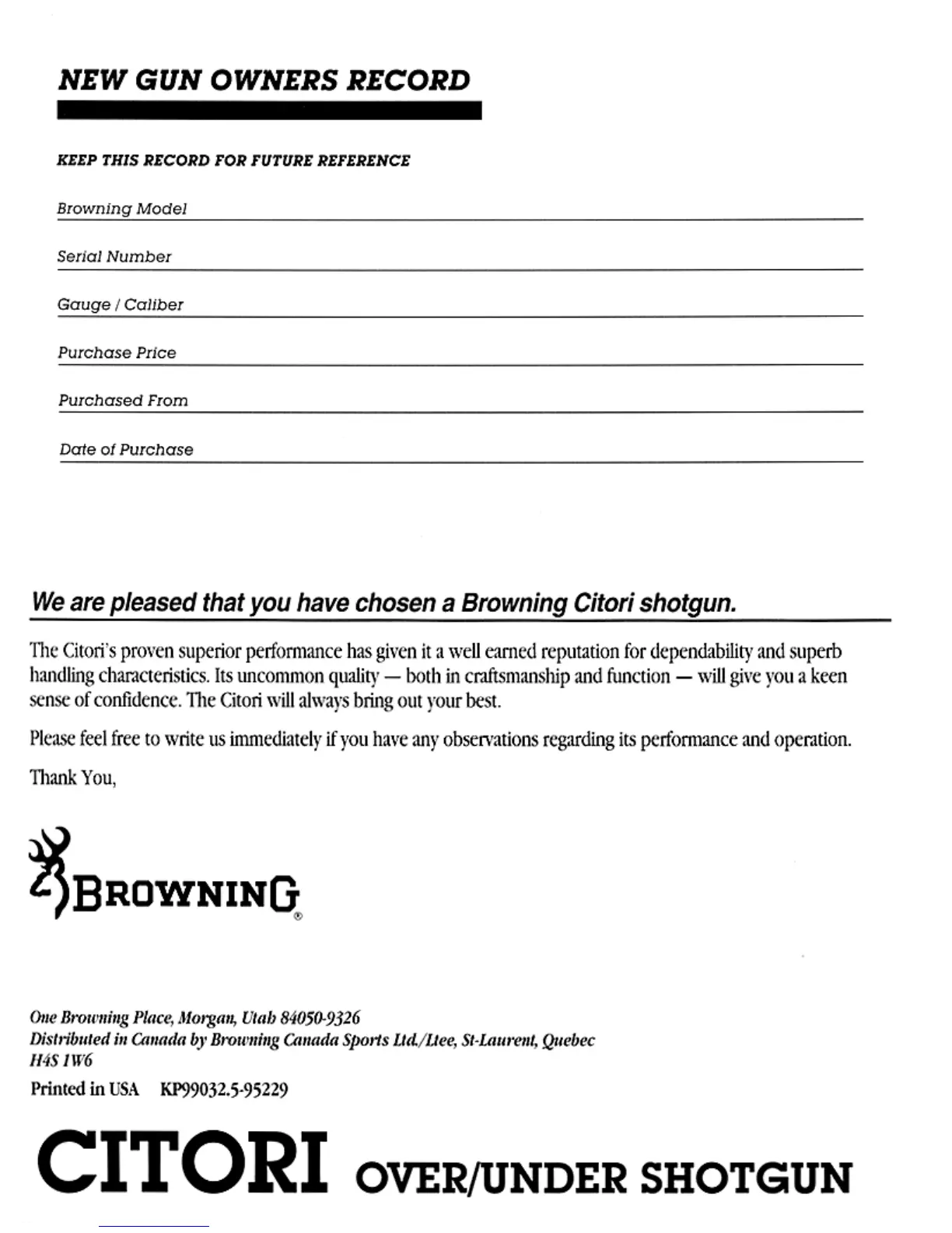 Browning CITORI OVER UNDER SHOTGUN - New Gun Owners Record