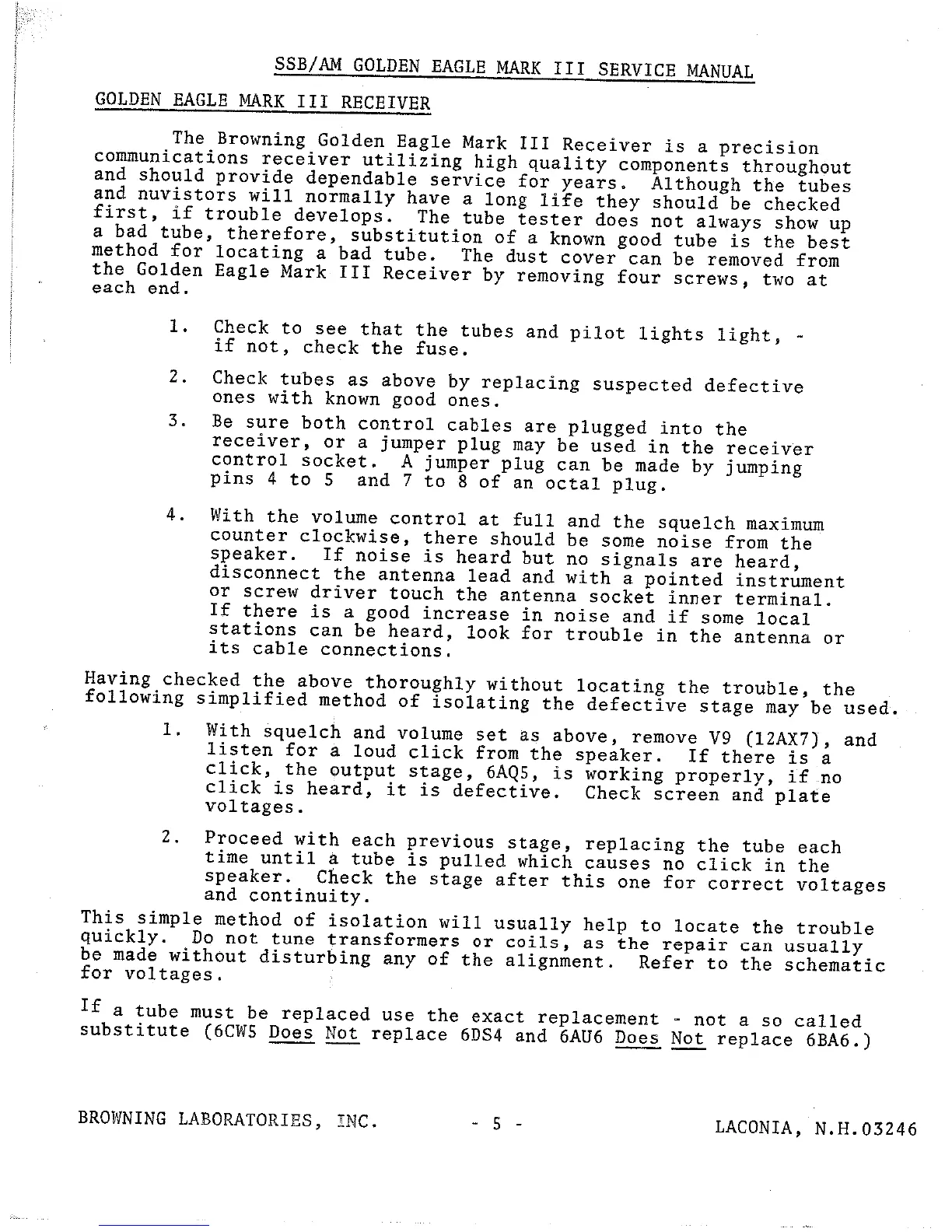 Browning Golden Eagle Mark III - RECEIVER SERVICING AND ALIGNMENT; RECEIVER TROUBLESHOOTING BASICS