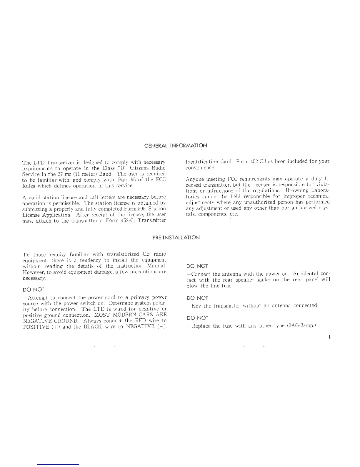 Browning LTD - GENERAL INFORMATION; PRE-INSTALLATION