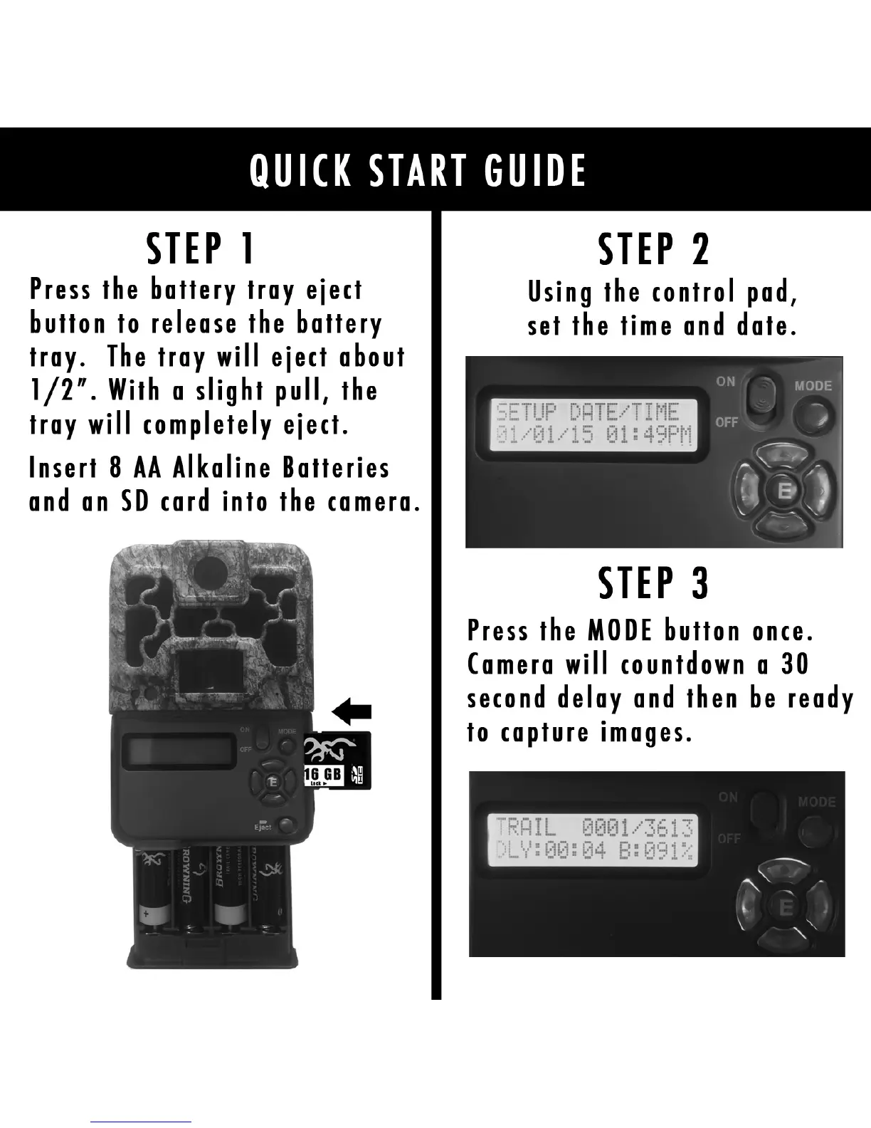 Browning Specops Series BTC-8FHD - Quick Start Guide; Initial Setup; Set Time and Date; Camera Ready State