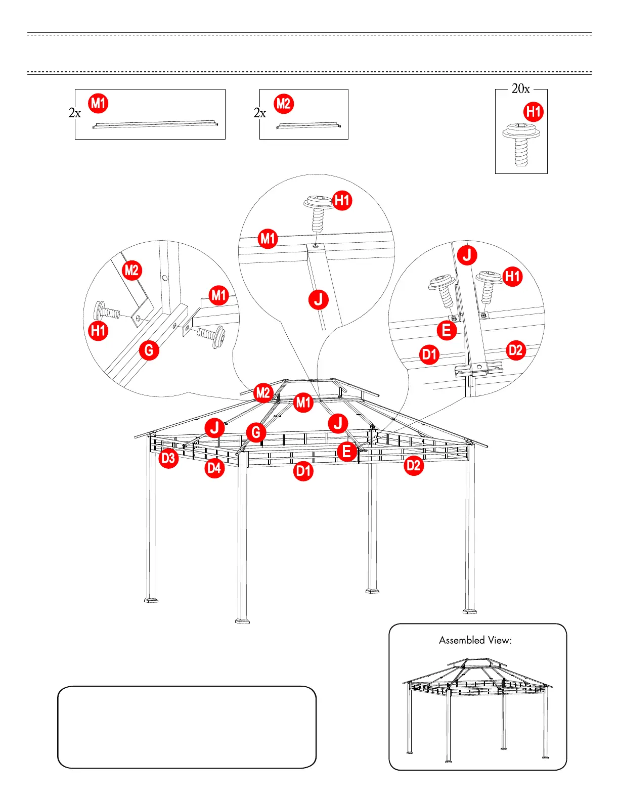 Flashing(M1)&(M2) with bolts(H1), assemble the