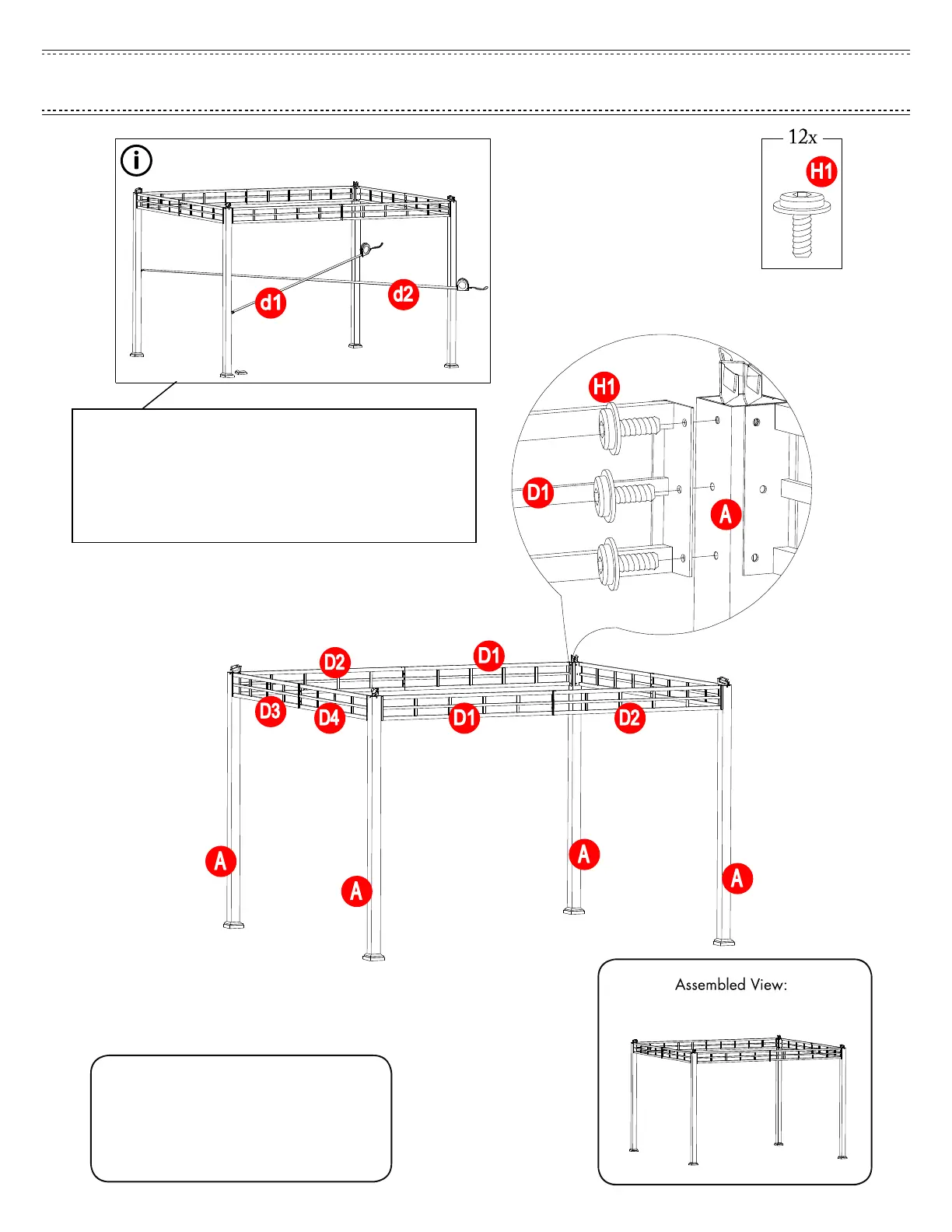Side)(D2) to post(A) with bolts(H1),