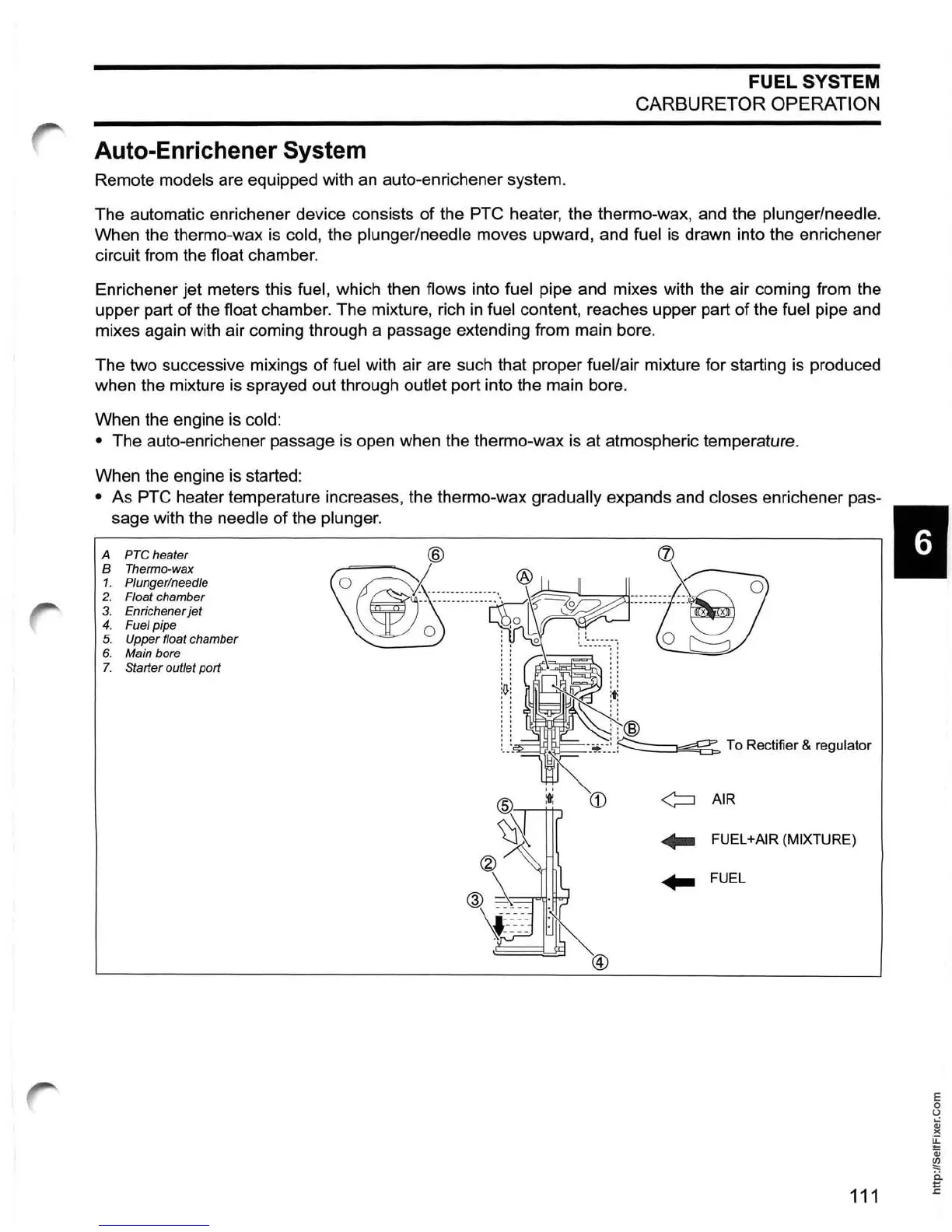 • As PTC heater temperature increases, the thermo-wax gradually expands and closes enrichener pas-
