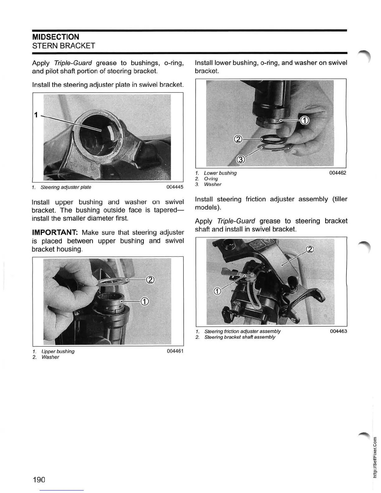 Install lower bushing, o-ring, and washer