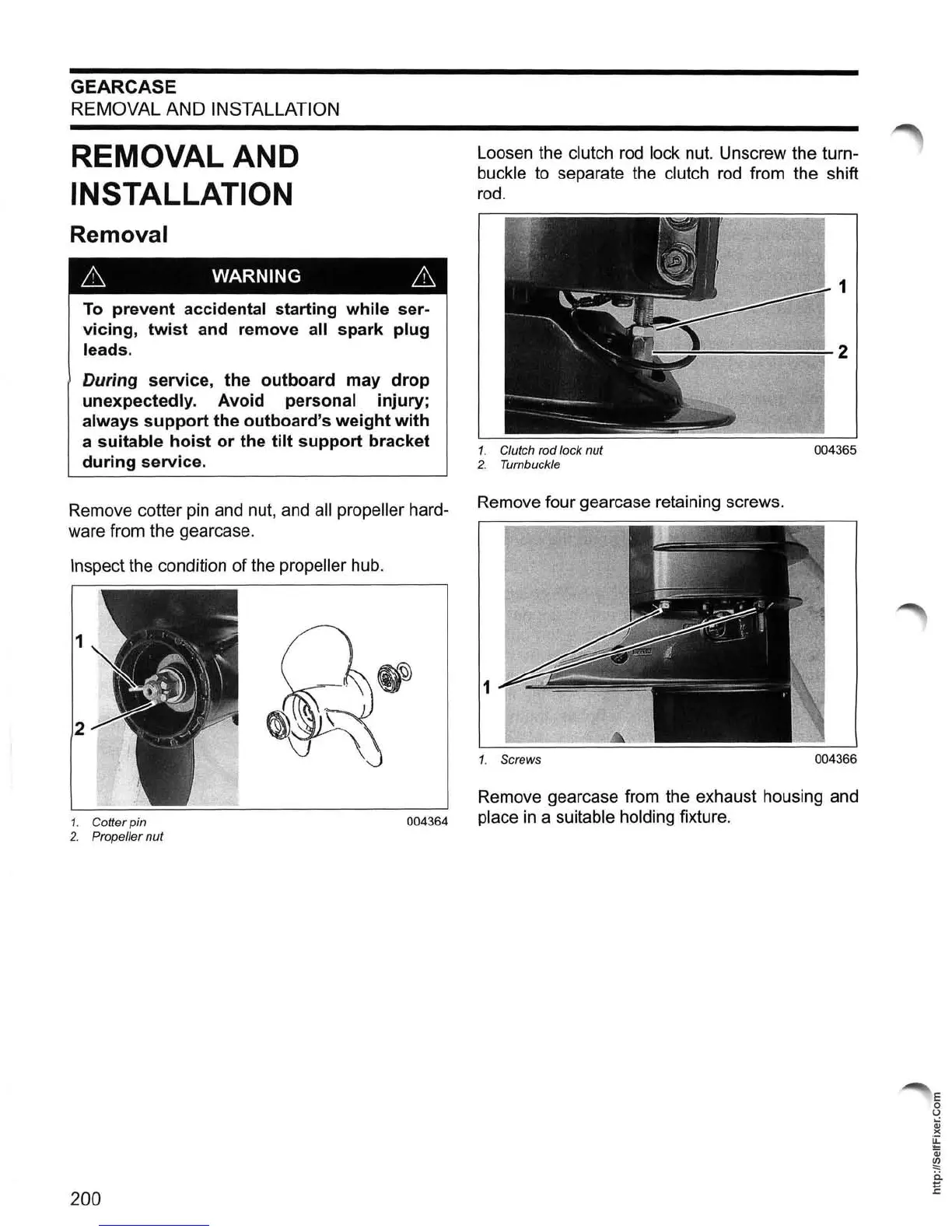 Remove four gearcase retaining screws.