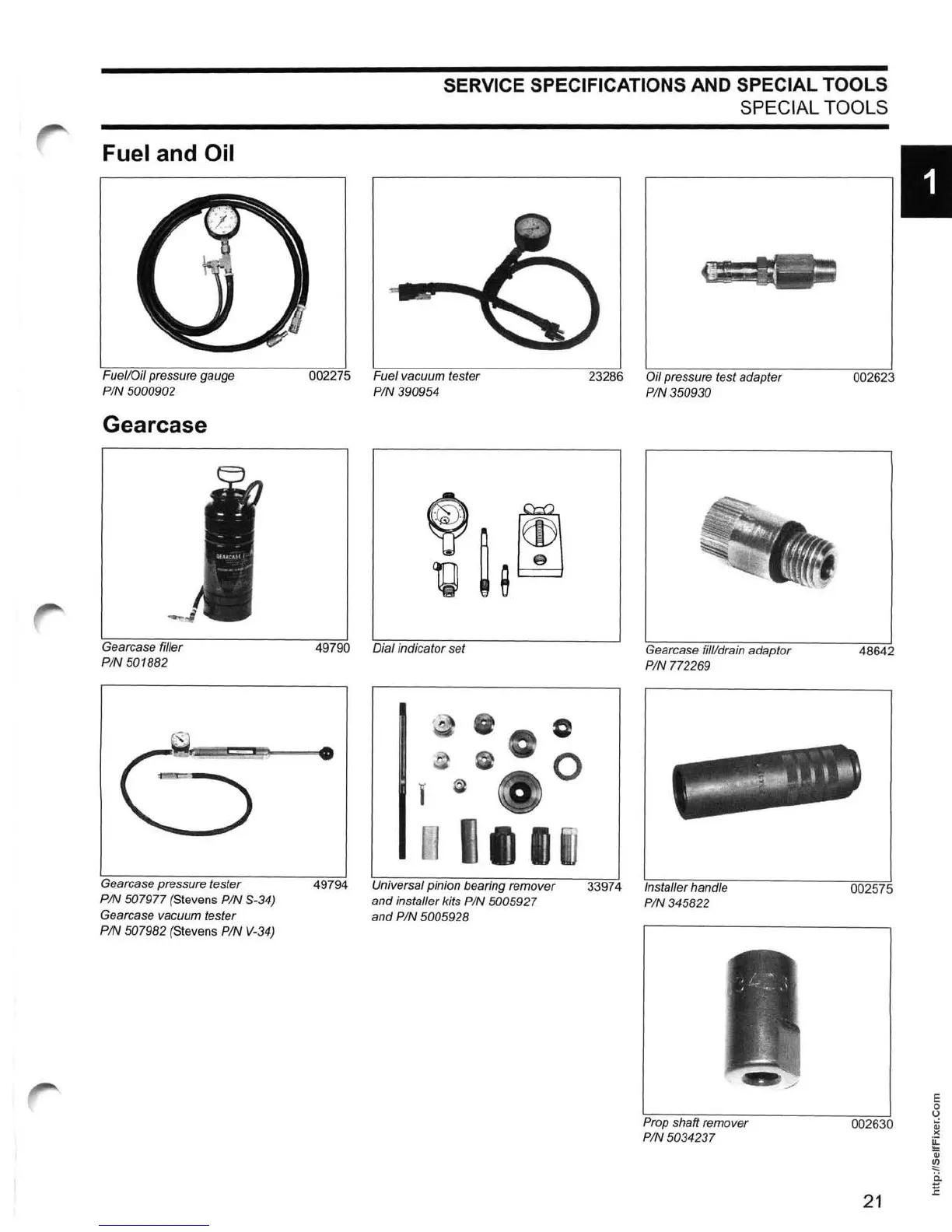 SERVICE SPECIFICATIONS AND SPECIAL TOOLS