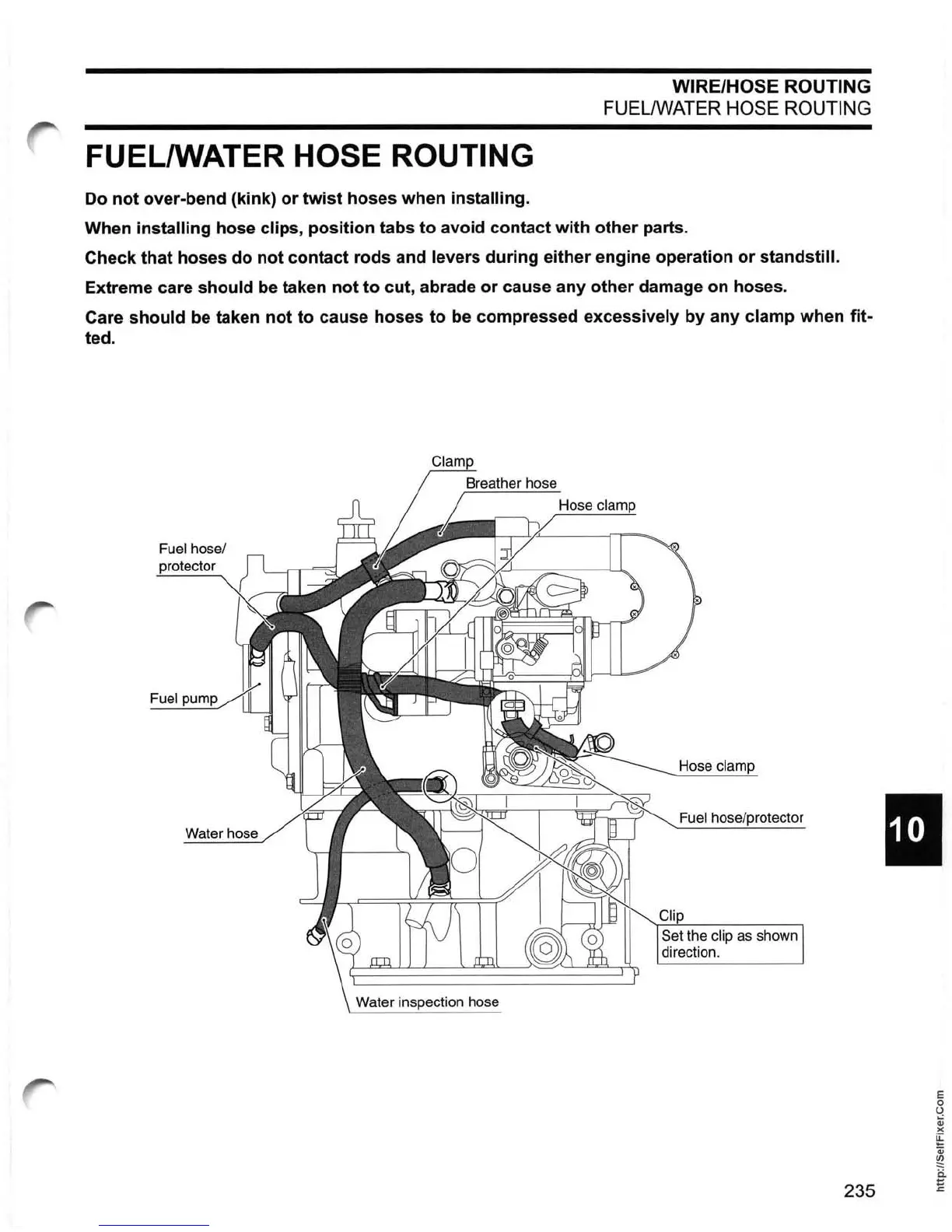 FUELIWATER HOSE ROUTING