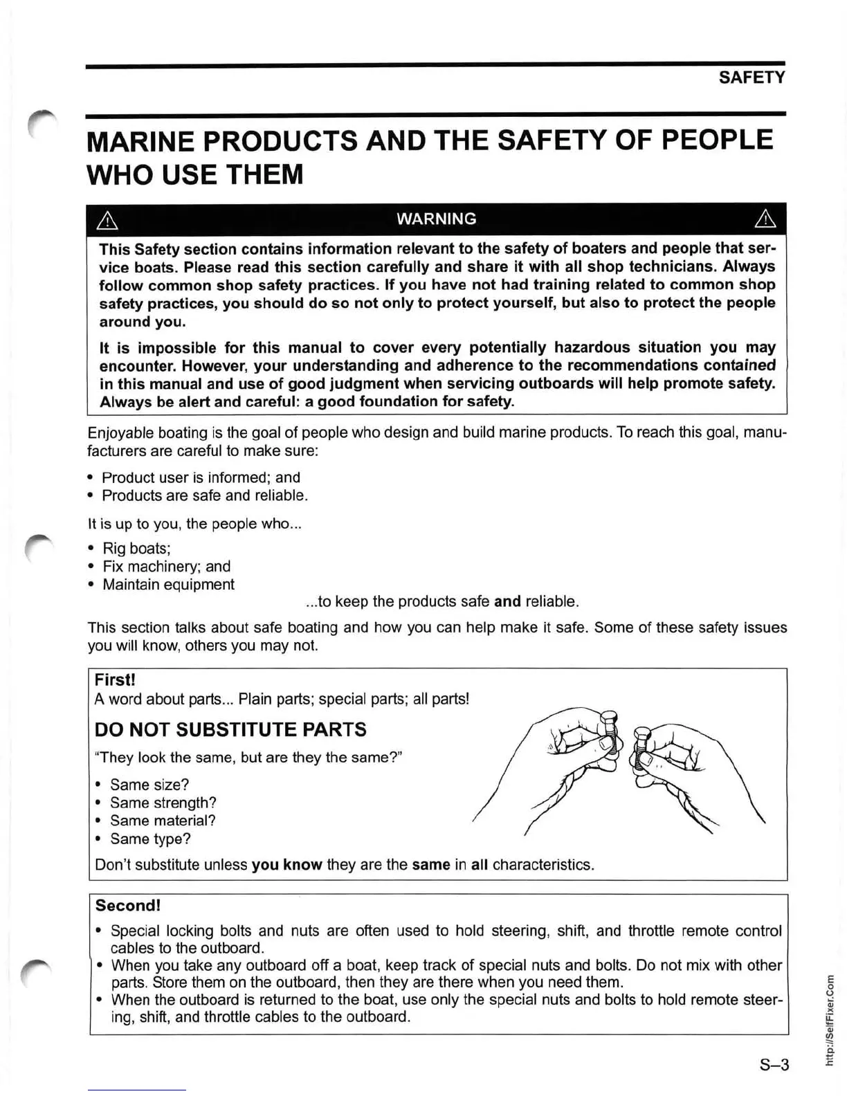 this manual and use of good judgment when servicing outboards will help promote safety.
